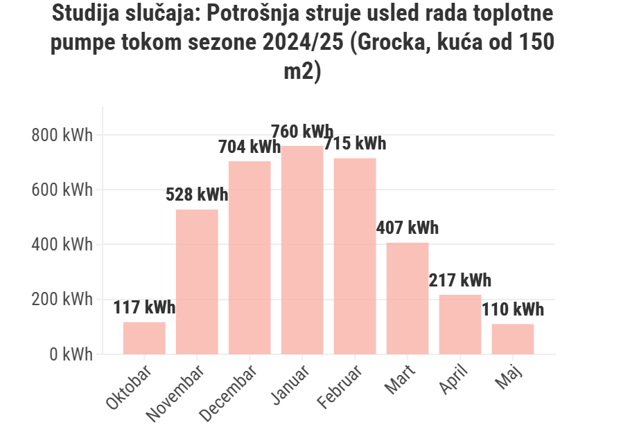 Potrošnja toplotne pumpe praćena je tokom cijele sezone grijanja 2024/25. godine, od oktobra do maja.